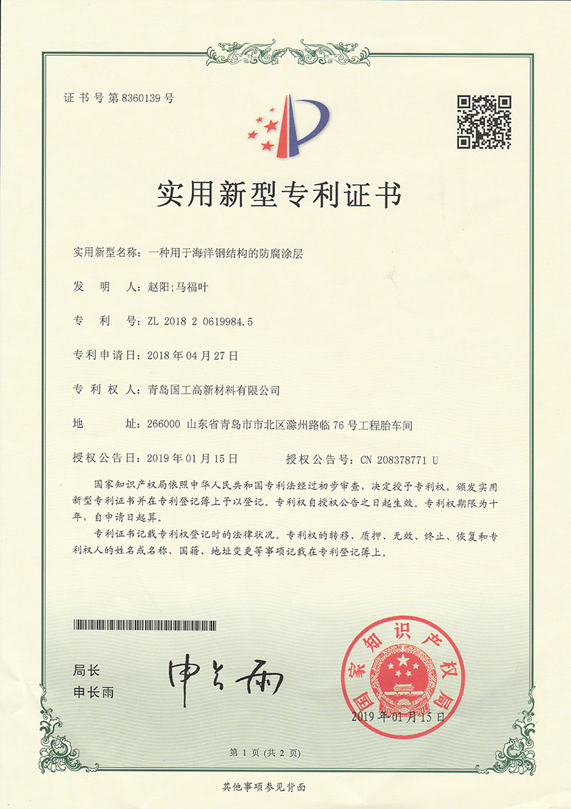一種用于海(hai)洋鋼結構的防腐(fu)塗層